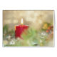 Sonhento Natal - uma vela vermelha a arder tranquilamente no meio de uma coroa, com bokeh. Imagem pacífica em cores e espírito de Natal. Adicione seu próprio texto.