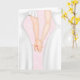 Um cartão de congratulações de casamento para um casamento lésbico. O design apresenta duas noivas em vestidos de noiva em um fundo rosa suave. (Criado com arte original ©delightful-doodles.com)
