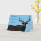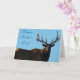 Cartão "legendado" Touro Elk Sky Lined. O céu azul claro dá a esta foto uma cor diferente dos castanhos e bronzeados do alce e das gramíneas das pradarias. Um belo touro.