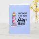 Um cartão de saudação de parabéns com uma imagem de aquarela de um farol listrado vermelho. Com a tipografia que diz: Parabéns, é sua hora de brilhar brilhante. Uma mensagem dentro do cartão que você pode personalizar ou deixar como está.