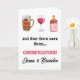 Felicite o casal feliz com esta bela carta. Ele apresenta um copo de cerveja, um copo de vinho e uma garrafa de leite de bebê. Adorável dar a qualquer novo pai. Todo o texto pode ser personalizado para atender às suas próprias necessidades. Personalize com os nomes do casal feliz.