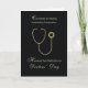 Celebre e honre o trabalho de duro e a compaixão dos profissionais de saúde com esse elegante Cartão do Dia dos Médicos. Apresentando um estetoscópio de aspecto brilhante dourado, colocado sobre fundo preto, é um design sofisticado. Este cartão exprime obrigados sinceros e apreço pela dedicação e assistência que os médicos dão. Quer estejam tratando pacientes ou fazer diferença no campo médico, este cartão é a maneira perfeita de mostrar gratidão por seus incansáveis esforços. Com uma mensagem dentro refletida, é uma maneira significativa de reconhecer o trabalho inestimável que os médicos fazem todos os dias. (O ouro é criado digitalmente apenas.)