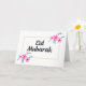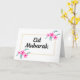 Cartão de saudação do Ramadan floral rosa desejando Eid Mubarak.