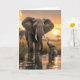 Um elefante-mãe fica em uma fenda d'água serena enquanto um elefante bebê brincalhão se infiltra nas proximidades, tudo contra um pôr do sol atordoante. Todo o texto pode ser mudado.