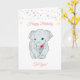 Elefante e estrelas multicoloridas de aniversário no Cartão Branco. Todos os textos podem ser personalizados.