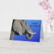 Foto de elefante em fundo azul com "Parabéns" na frente. Dentro diz "A idade é irr-elefante!" em uma fonte divertida. Todo o texto pode ser personalizado clicando em personalizar isto acima. Esta foto de elefante foi tirada em safari enquanto em Botswana, com minha família. Ele estava só por aí a divertir-se. Trabalho de arte/Fotografia por Melanie Fine ©