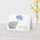 Cartão de primeiro aniversario personalizado, com um elefante com balões azuis.