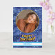 Cartão Elegant Blue and Gold Glitter Photo Name Birthday