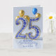 Cartão Elegant Blue Gold Ornate 25th Wedding Anniversary
