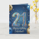 Celebrate a major milestone with this elegant 21st birthday greeting card! This festive layout features stunning, sparkling 3D glitter numbers to mark their twenty-first year, surrounded by realistic gold and navy blue balloons. Set against a magical, starry night blue background, the elegant gold script lettering allows you to easily add the birthday boy's name. A sophisticated, modern, and masculine design perfect for a son, brother, nephew, or friend's unforgettable 21st birthday celebration.
