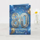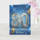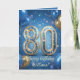 Cartão Elegant Blue Gold Sparkly Balloons 80th Birthday