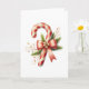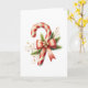 Send warm holiday wishes with this elegant Christmas card featuring a red and white candy cane tied with a satin red bow and gold flower center. Accented with pine sprigs and festive berries, this design blends classic Christmas charm with a touch of sophistication. Perfect for anyone who loves timeless holiday style. Blank inside for your personal message.