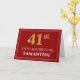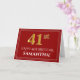 Cartão Elegant Faux Gold Look "41st" Birthday, Name (Red)