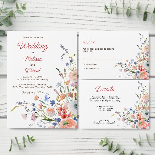 Watercolor Elegant Floral Wedding Program.