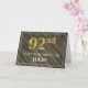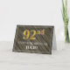 Cartão Elegante 92.º Aniversário: Madeira Faux, aparência