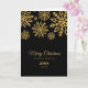 Celebre os feriados em estilo com este elegante design de flocos de neve preto e dourado. Apresentando flocos de neve dourados em um fundo preto elegante, este design personalizável permite adicionar seu nome de família para um toque pessoal. Uma forma perfeita de enviar saudações sofisticadas e festivas a amigos e entes queridos.
