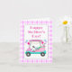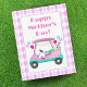 Este item único retrata um carrinho de golfe decorado para uma Mãe golfista no Dia das Mães! Este carrinho de golfe colorido transporta presentes, bolo e Champanhe cintilante. Este é um cartão divertido do Dia das Mães para dar a alguém que vive e respira golfe!