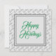 O design apresenta o desejo de feriado "Felizes Feriados" em um roteiro verde em um padrão de prata e branco. Um cartão de cartões de natal elegante para família, amigos, colegas e associados. Itens relacionados ao design disponíveis na Loja WD Art Zazzle. Para solicitações ou perguntas especiais, entre em contato com o artista em wafadahdalcreates@gmail.com. © Wafa Y. Dahdal - Todos os direitos reservados.
