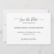 Modelo de cartão de save the date de casamento com uma foto e tipografia de convite elegante em preto no verso. A frente do cartão apresenta caligrafia branca elegante com "Save the Date" sobre um modelo de foto de um casal feliz. O verso tem texto de save the date em preto fácil de personalizar. © y.BEE WEDDINGS