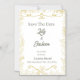 Anuncie seu dia especial com estilo com este cartão elegante "Save the Date" em folha de ouro. Com delicados contornos botânicos e tipografia graciosa, este modelo combina charme clássico com um toque moderno. O requintado detalhe dourado em um fundo branco nítido cria uma aparência atemporal, perfeita para qualquer tema de casamento - desde cerimônias românticas em jardins até celebrações luxuosas em hotéis.