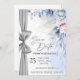 Anuncie seu dia especial com elegância atemporal usando este cartão de Save the Date em aquarela de luxo, lindamente projetado com flores em azul suave e blush e um sutil acento de fita prateada.