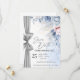 Anuncie seu dia especial com elegância atemporal usando este cartão de Save the Date em aquarela de luxo, lindamente projetado com flores em tons de azul suave e rosa e um sutil detalhe de fita prateada.