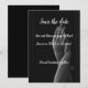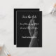 Faça uma declaração ousada e elegante com este cartão de save-the-date com um fundo preto elegante e letras brancas nítidas. O design de alto contraste exala sofisticação, perfeito para eventos de gala, celebrações modernas ou temas de casamento contemporâneos. Seu estilo minimalista garante que os detalhes do seu casamento sejam claros e cativantes, preparando o cenário para um evento inesquecível. Totalmente personalizável para atender à sua visão única, este cartão é uma maneira elegante e memorável de anunciar seu dia especial.
