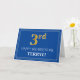 A frente deste rico e design de cartão de saudação com tema de aniversário luxuoso apresenta um grande número ordinal "3º" com um aspecto falsa/imitação de ouro inspirado, a mensagem "HAPPY ANIVERSÁRIO DE 3 ANOS,", um nome de destinatário personalizado e um padrão de borda consistindo em linhas finas em um fundo azul colorido. O dentro apresenta uma mensagem de saudação de aniversário personalizável, ou talvez possa ser apagado e deixado o vazio se uma mensagem for escrita manualmente. Um cartão de saudação de aniversário personalizável como este pode ser usado para reconhecer o terceiro aniversário de alguém. [~Z0000482]