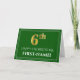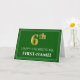 A frente deste luxuoso e respeitável design de cartões de saudação de aniversário com tema de cumprimentos apresenta um grande número ordinal "6" com uma aparência inspirada em imitação/falsa ouro, a mensagem "HAPPY 6 BIRTHDAY", um nome de destinatário personalizado e um padrão de borda que consiste em linhas finas em um fundo de cor verde. O dentro apresenta uma mensagem de saudação de aniversário personalizada, ou talvez possa ser apagado e deixado o vazio se uma mensagem for escrita manualmente. Um cartão de saudação de aniversário personalizado como este pode ser uma maneira elegante de enviar cartões de aniversários a alguém que comemora seu sexto aniversário. [~Z0000481]