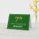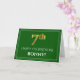 A frente deste design de cartão de saudação elegante e com tema de aniversário de rico apresenta um grande número ordinal "7" com um olhar inspirado em imitação/falsa ouro, a mensagem "FELIZ 7 BIRTHDAY", um nome de destinatário personalizável e um padrão de borda que consiste em linhas finas sobre um fundo de cor verde. O dentro apresenta uma mensagem de saudação de aniversário personalizada, ou talvez possa ser apagado e deixado o vazio se uma mensagem for escrita manualmente. Um cartão de saudação de aniversário personalizado como este pode ser enviado para celebrar o sétimo aniversário de alguém. [~Z0000481]