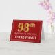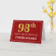 A frente deste rico e design de cartão de saudação temido de aniversário luxuoso apresenta um grande número ordinal "98º", com um visual falsa/imitação de ouro inspirado, a mensagem "FELIZ 98º ANIVERSÁRIO", um nome de destinatário personalizado e um padrão de borda que consiste em linhas finas sobre um fundo vermelho. O dentro apresenta uma mensagem de saudação de aniversário personalizada, ou talvez possa ser apagado e deixado vazio se uma mensagem for escrita manualmente. Um cartão de saudação de aniversário personalizável como este poderia ser enviado para celebrar o aniversário de 98 anos de alguém. [~Z0000467]
