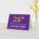 A frente deste design de cartão de saudação temático de aniversário elegante e rico apresenta um grande número ordinal "26º" com uma aparência falsa/imitada de ouro inspirada, a mensagem "FELIZ 26º ANIVERSÁRIO", um nome de destinatário personalizável e um padrão de borda composto por linhas finas, sobre um fundo cor púrpura. O dentro apresenta uma mensagem de saudação de aniversário editável, ou talvez pudesse ser apagado e deixado o vazio se uma mensagem fosse escrita manualmente. Um cartão de saudação de aniversário personalizado como este pode ser uma maneira elegante de enviar uma mensagem de saudação de aniversário a alguém que está celebrando seu vigésimo sexto aniversário. [~Z0000484]