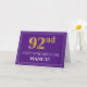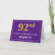 Cartão Elegante Faux Dourado visual 92º Aniversário, Nome