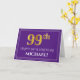A frente deste luxuoso e respeitável design de cartões de saudação com tema de aniversário apresenta um grande número ordinal "99º" com uma aparência de "faux/imitation gold" inspirada, a mensagem "HAPPY 99TH BIRTHDAY", um nome de destinatário editável, e um padrão de borda composto por linhas finas, sobre um fundo de cor roxa. O dentro apresenta uma mensagem de saudação de aniversário personalizada, ou talvez possa ser apagado e deixado o vazio se uma mensagem for escrita manualmente. Um cartão de saudação de aniversário personalizável como este pode ser uma maneira elegante de enviar uma mensagem de saudação de aniversário a alguém que está comemorando seu nonagésimo nono aniversário. [~Z0000484]