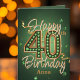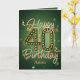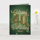 Cartão Elegante Luxuoso Verde e Dourado Aniversário de 40