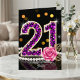 Celebre seu marco especial com estilo neste luxuoso cartão de aniversário de 21 anos. Perfeito para a jovem que ama um toque de glamour, esta obra de arte apresenta um deslumbrante "21" preenchido com falsas gemas de diamante roxo e aparado em dourado. A composição sofisticada é acentuada por uma clássica sequência de pérolas brancas, folhas de filigrana dourada e uma rosa rosa suave contra um fundo preto elegante com luzes bokeh festivas.