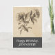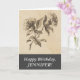 A frente deste elegante e vintage style greeting card design apresenta uma representação de flores, juntamente com uma mensagem e um nome personalizados. O dentro apresenta uma mensagem de saudação de aniversário personalizável. Um cartão de boas-vindas como este pode ser usado para enviar desejos de aniversário a alguém que comemora seu aniversário.