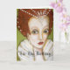 Esta linda e engraçada carta de aniversário da Renascença foi desenhada a partir da minha pintura original, curiosa Elizabeth I, de arte folk moderna da Rainha Tudor Inglesa. Esta interpretação esbranquiçada e artística de seu cabelo tem sotaque pérola em seu cabelo vermelho, um colarinho de vestido alto e um fundo verde mudo. É a maneira perfeita de dizer Parabéns à sua rainha por hoje!