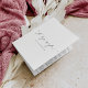 O cartão do dia do casamento Ellesmere apresenta uma design moderna minimalista sobre um fundo branco para uma aparência simples e limpa. O cabeçalho do script é uma imagem que não pode ser editada. Todo o outro texto é totalmente editável. Para personalização mais avançada deste design, basta selecionar o botão "Personalizar" acima.