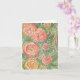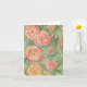 Um cartão de notas em branco com bela arte em aquarela de rosas em tons de rosa e laranja-amarelo.