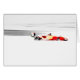 Esta carta empolgante apresenta um carro de corrida de rodas aberto embaçado pela velocidade.