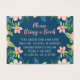 "Por favor, traga um livro em vez de um cartão" é uma mensagem maravilhosa para incluir nos convites para chás da sua menina. Velho ou novo, a aventura será compartilhada uma e outra vez à medida que sua filha ou neta cresce. Flores de aquarela simples, modernas e pintadas à mão fazem um tema doce e adorável para o chá do seu bebê. O fundo azul do marinho pode ser alterado. As listras largas, cor-de-rosa e branca, enchem o lado traseiro. (o rosa pode ser alterado para qualquer cor que você desejar para o tema do seu chá). Direitos autorais.