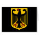 Casaco da Alemanha. A casaco de braços da Alemanha exibe uma águia negra (a "águia federal", antiga Reichsadler "Águia imperial") em um escudo amarelo (Ou, uma águia exibindo um calcanhar). Trata-se de uma reintrodução do casaco de armas da República do Weimar (utilizado em 1919-1935), adotado pela República Federal da Alemanha em 1950. A atual design oficial deve-se a Tobias Schwab (1887-1967) e foi introduzida em 1928.