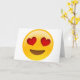 Design engraçado de Emoji. Cara amarela com os olhos vermelhos do coração. Adicione seu próprio texto. Mude a cor do fundo à sua favorita.
