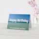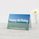 Este lindo cartão de aniversário de praia é feito sob medida com o nome da sua empresa costeira sobre as belas ondas do oceano. Um cartão de aniversário de negócios à beira-mar para marketing para clientes antigos e colegas corporativos atuais. Escrita branca moderna ao longo do horizonte da costa. Escrita azul personalizada no interior.