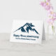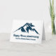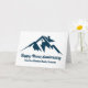 Um cartão de empresa de imóveis de uma cordilheira montanhosa para uma imobiliária localizada em uma cidade ou vila montanhosa. Sua mensagem é escrita em azul-marinho sob a casa entre as montanhas. Ótimo cartão postal de marketing para um construtor de casas no topo da montanha.