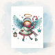 Este anjo bonito é ilustrado no estilo da arte popular. O sentimento de Feliz Natal pode ser mudado. Você sabia que pode reciclar suas cartas de saudação acrescentando um quadro e pendurando-as como miniatura? Eles fazem decoração estética de excelente feriado em casa. Imagem assistida por IA adquirida com uso comercial. Trabalho de arte: RedHeronLighthouse