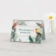 Este cartão de despedida editável apresenta papagaios em torno de uma moldura. Há uma mensagem na frente e no interior do cartão também. Ambas as mensagens são editáveis, então vá em frente e altere as palavras, bem como o estilo, tamanho e cor da fonte. Você também pode alterar as cores do fundo. Este cartão pode ser usado para mensagens de despedida, aniversários, aniversários de casamento, aposentadoria, etc.