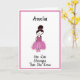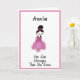 Cartões personalizáveis de incentivo ao cancer de mama "Ela era mais forte do que sabia" Cartão de encorajamento e uplifagem com uma garota vestindo saia cheia de fitas cor-de-rosa