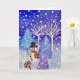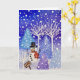 Envie um cartões de natal feliz com este cartão "Let It Snow" do EnIncentiveMe. A frente apresenta um boneco de neve entre árvores coloridas em uma noite de inverno de neve. Escreva os seus sentimentos pessoais dentro nos cantos de neve no dentro do cartão. Esta é uma impressão da minha aquarela original e uma que certamente fará eles sorrir.